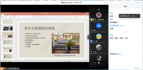 “你还好吗?”、“提到疫情你首先想到的词汇是什么?”、“你认为疫情对自己的影响大吗?”、“疫情中我们能为学生做什么?”,艾波老师从特殊期大家关心的问题着手开讲,她以自己坚守武汉的亲历者视角,讲述了这四个月以来心路历程,为大家分享了疫情中一些感人的故事,快速引起了老师们的情感共鸣,为接下来专业的讲解营造了良好的氛围。