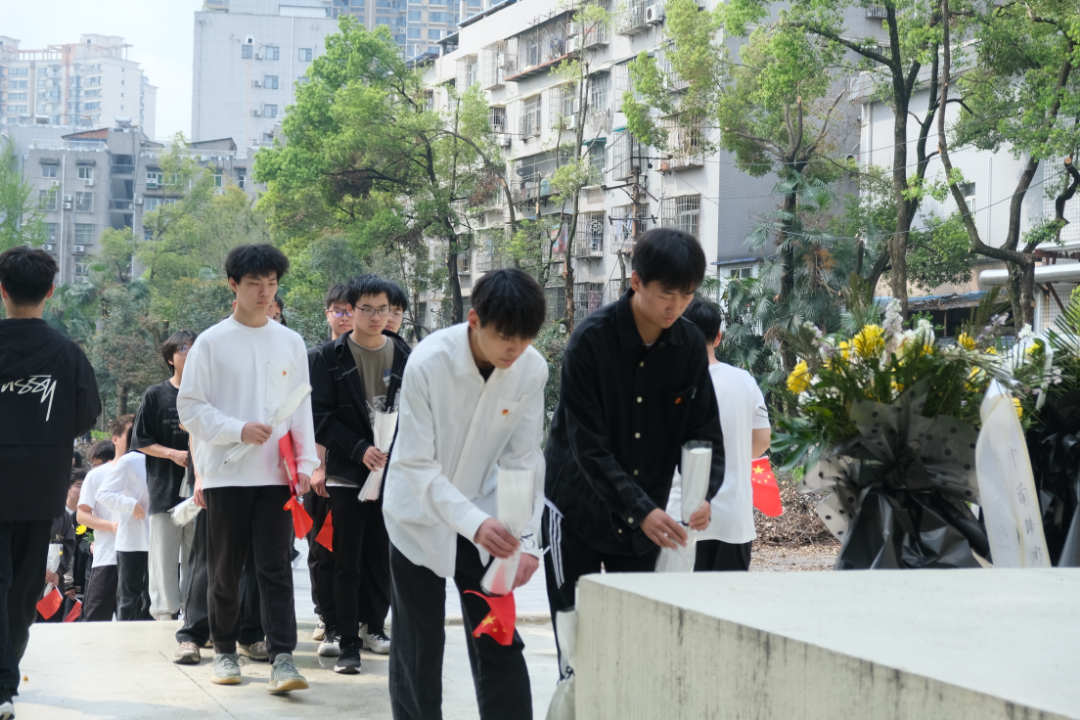 在题有“北伐战争中牺牲的革命先烈永垂不朽”的12米的白色纪念碑下,大家敬献鲜花,向那些在北伐战争中英勇牺牲的叶挺独立团烈士们致以崇高的敬意。默哀三分钟的时间里,每个人都沉浸在深深的怀念与哀思之中,缅怀那些为国捐躯、因正义而牺牲的烈士们。默哀仪式结束后,学院青年团员代表深情地带领大家重温北伐独立团烈士陵园那段英勇悲壮的历史。并表示作为新时代的青年,绝不能辜负烈士们的遗愿和期望。我们要不忘初心、牢记使命,勇于担当起时代赋予我们的重任。