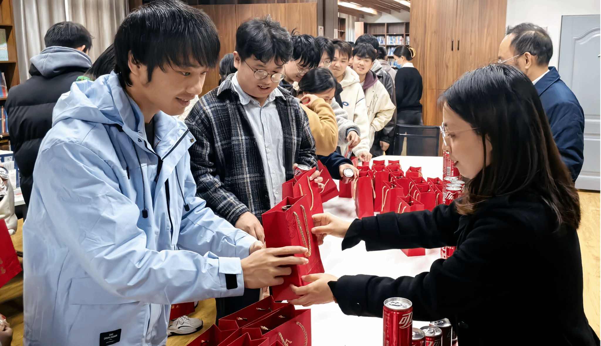 活动最后,与会的领导老师为考研学子发放装有可乐、文具、水果的“考研加油包”。在场的考研学子对学院的慰问报以衷心感谢,并表示他们将全力以赴,力求在考试中取得优异成绩。
