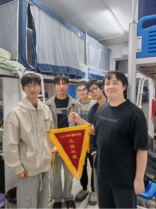 根据寝室评分情况,最终选出8间文明寝室,辅导员老师为他们颁发文明寝室锦旗。