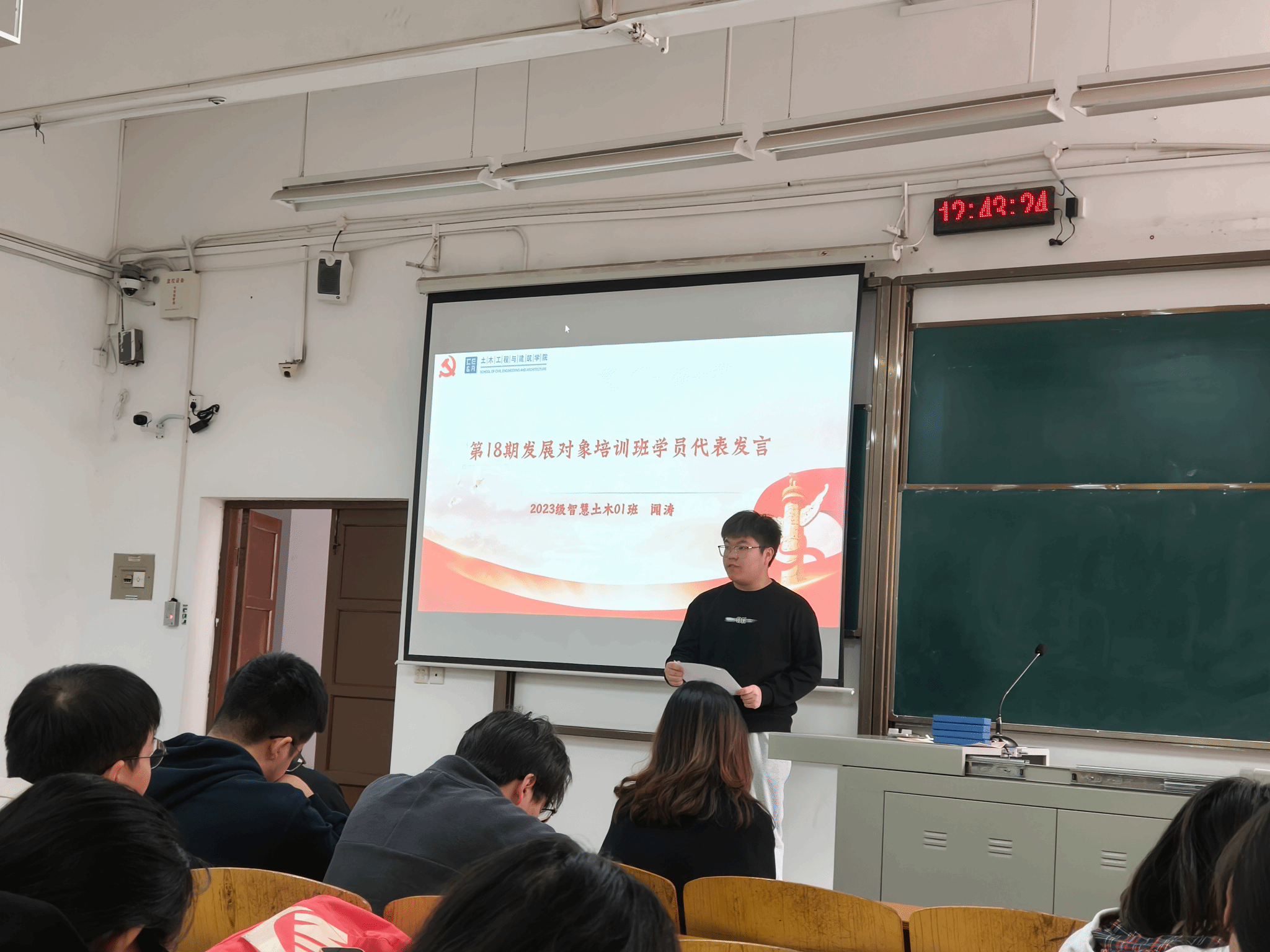 本期入党积极分子和发展对象培训班学员代表周添楠、闻涛结合自己的学习成长、志愿服务、社会实践、学科竞赛经历,分享自己向党组织靠拢的心路历程,并呼吁全体学员,要牢记习近平总书记对青年人的嘱托和希望,认真参加党校学习、积极投身社会实践,时刻以党员的标准要求自己,发挥好先锋模范作用。