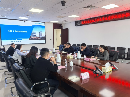 中铁上海工程局集团第五工程有限公司副总经理吴宇(校友)全面介绍了企业发展情况,对学院人才培养质量给予高度肯定。施工技术部部长李晟聚焦桥梁建设领域,着重展示了南宁邕江特大桥、柳州凤凰岭大桥等标志性项目的实践成果。成轶从学科建设、人才培养、科研创新等方面,系统介绍了学院近年来的发展成就与特色优势。双方就产学研合作、学生实习实践、毕业生输送等方面展开深度交流。