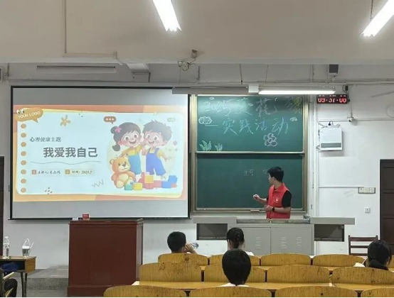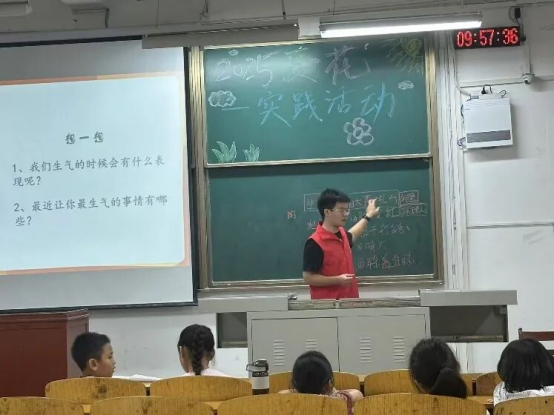心理健康主题课程,志愿者用贴近生活的方式聊聊“心灵的事”。 志愿者结合学业压力、社交困扰等常见问题,用自己的经历举例,分享调节情绪的小技巧——比如写情绪日记、5分钟呼吸法等,帮助学生正确认知情绪,掌握基本的情绪调节技巧,增强心理素质。同时也组织了轻松愉快的团体游戏与互动活动——现场“压力气球”游戏,大家写下烦恼再踩破,在释放中轻松互动。