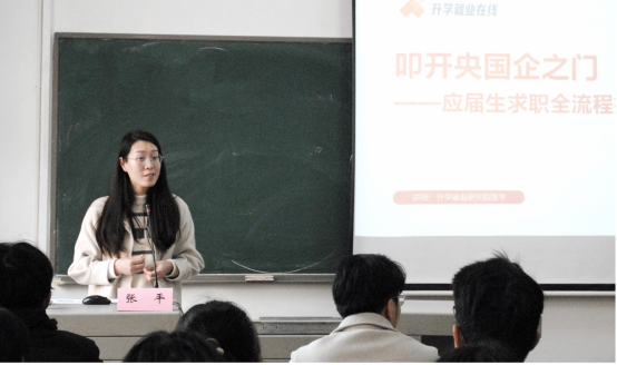 讲座特邀升学就业在线研究院首席研究员、资深就业导师张平担任主讲。张平老师紧扣“形势洞察、精准匹配、技巧赋能”三大核心,为在场学生带来了一场系统性强、实用性高的求职指导。