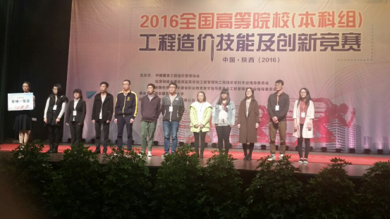 11月4-6日,由中国建设工程造价协会、住房和城乡建设部主办,西安建筑科技大学承办的第二届全国高等院校工程造价技能及创新竞赛在西安市隆重举行。资源与土木工程学院工程管理专业首次组队参赛,在创新思维竞赛项目比赛中,荣获单项一等奖。