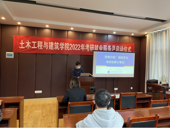 (通讯员 曾学菲)2022年4月14日下午,学院在智慧学习中心411报告厅举行mk网页版登录入口2022年“考研就业服务月”启动仪式暨“朋辈引航”考研就业故事分享会,学院党委副书记成轶,2018级、2019级城市与地下空间工程专业本科生参与活动,活动由学工办主任曾学菲主持。