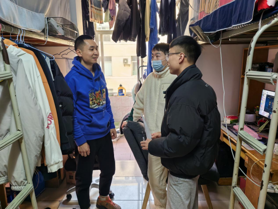 2月18日,学院党委副书记成轶和辅导员王博、彭超宇深入土建学院研究生宿舍和工作室走访慰问返校的学生。走访过程中,成轶副书记详细了解学生和家人的健康状况、新学期的期望和需求,与同学们进行深入亲切的交流。彭超宇老师提醒学生增强安全意识,做好寝室的卫生,并严格遵守宿舍的各项规定。王博老师希望同学们调整好心态,合理作息,做好新学期的规划,其中尤为关心毕业年级的同学们在就业中遇到的难题,并耐心给予建议与帮助。