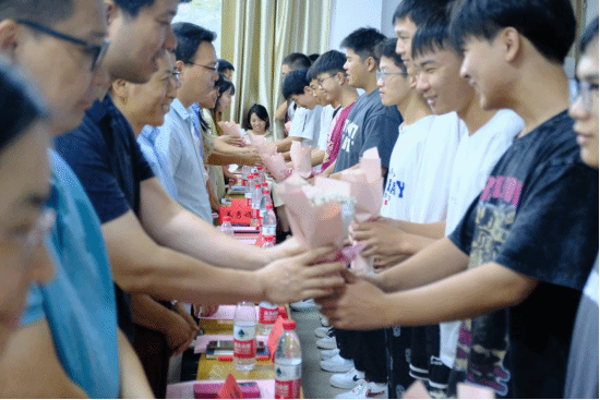 正值教师节来临之际。会上,2023级新生们为学院教师代表、新生辅导员和新生班主任送上了鲜花和祝福。