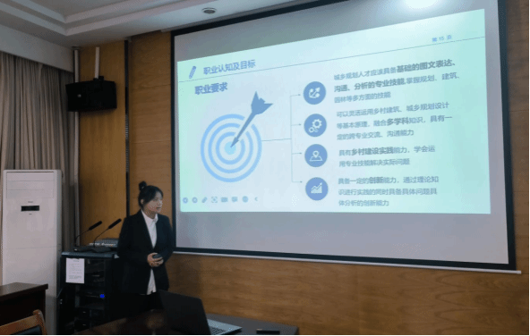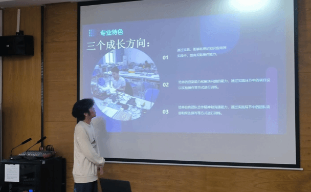 比赛伊始,夏添老师向参赛选手介绍了本次比赛的活动内容与规则,十六位选手按抽签顺序依次上台进行了汇报展示,并与评委老师进行互动问答,对自己的职业规划进行进一步阐述。赛中,成长赛道的同学从自身性格分析作为切入点进行介绍,展示了自己理想的职业规划以及为实现职业目标而设定为之努力的成长过程,涵盖大学每一学年的学习规划和毕业后五至十年的职业规划。就业赛道的选手充分凸显了自己的求职实战能力,将重心放在体现自身条件与岗位要求的适配度。评委老师结合每位选手的表现和存在的问题给予中肯的指导和建议,鼓励同学们在加强理论知识学习的同时,要聚焦中心,结合自己实际情况做好未来的职业规划,为将来就业做好准备。