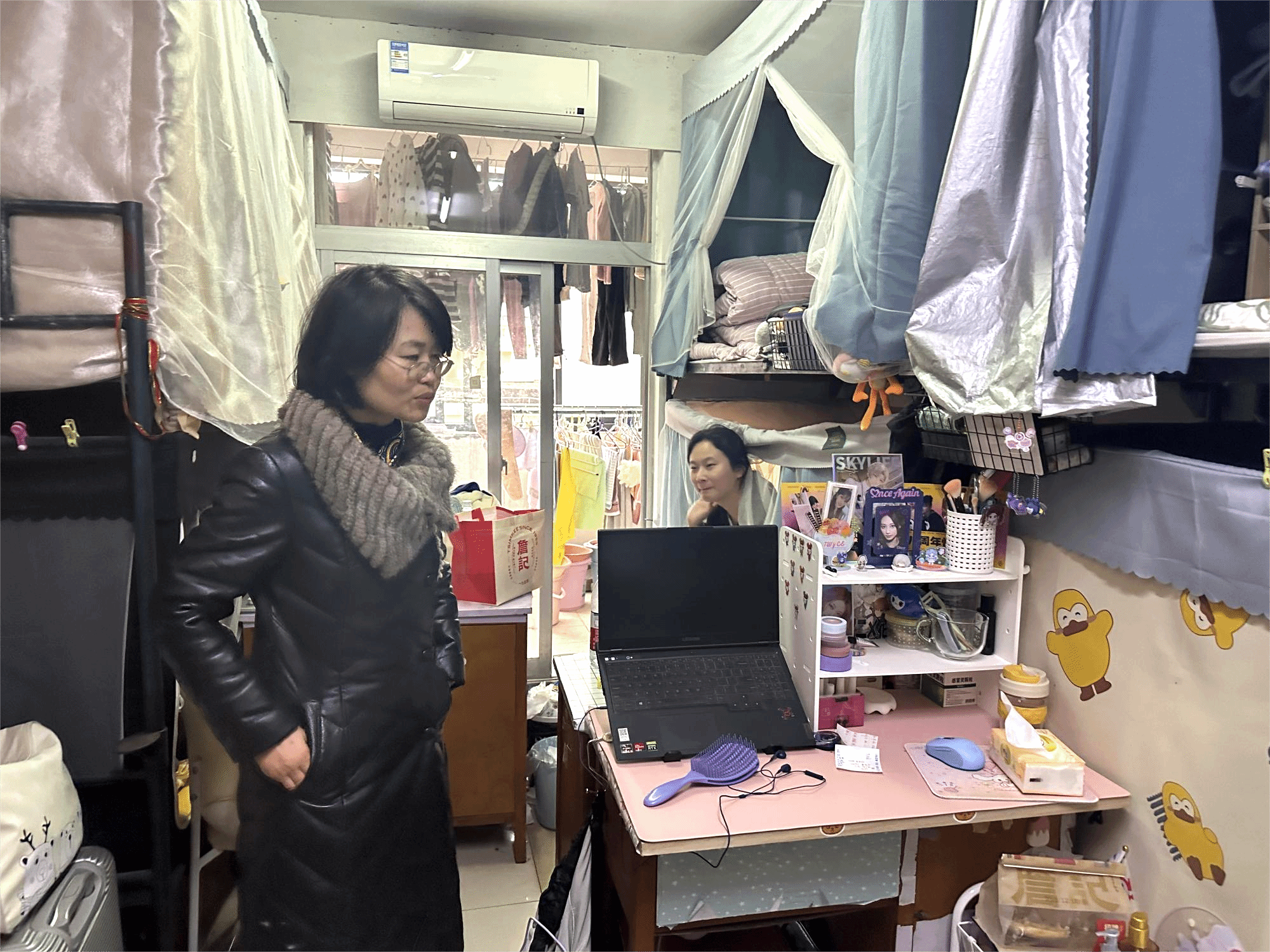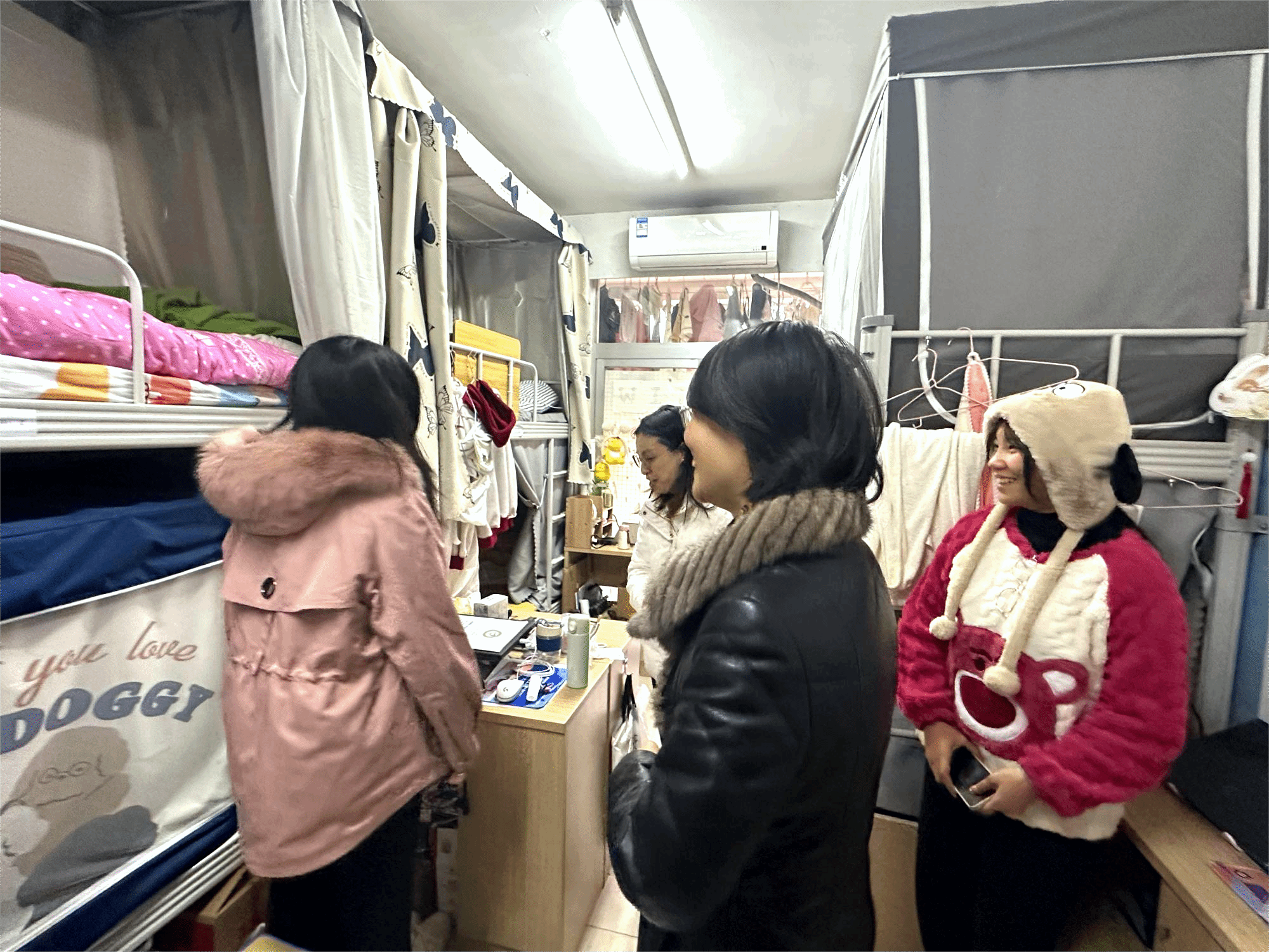 学工部徐迪迪部长和学生亲切交流,关心学生在校生活是否习惯,是否存在困难,对宿舍卫生提出要求,她指出:一是进入冬季,同学们要注意宿舍通风、卫生清理,预防传染病发生,做好日常防护;二是冬季天气寒冷、气候干燥,火灾风险不断增大,同学们要切实提高消防安全意识,抓住重点、认真落实,确保自身的生命财产安全。