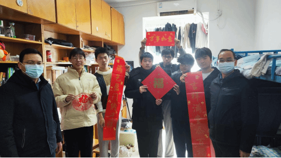 在学生宿舍,老师们亲切地将一幅幅春联送到同学们手中,红彤彤的春联,洋溢着中华民族特有的红色喜庆,表达了学院对新生亲切的问候与最美好的祝福。
