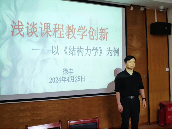 本次教学研讨会的内容丰富且深入,主要涵盖了四个方面。徐丰副教授首先是向大家作了课程概述,让大家对《结构力学》课程有更全面的了解;其次,徐教授深入剖析了《结构力学》课程教学中的痛点,引发了与会者的深刻思考;他详细阐述了《结构力学》课程的创新理念与举措,为大家提供了宝贵的启示;随后,徐教授向大家展示了《结构力学》课程的创新成效与推广,让大家切实感受到了教学创新的力量。