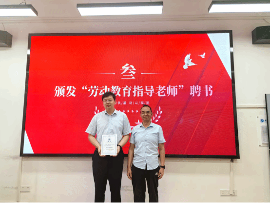 陆新代表学院聘请刘继琮为“劳动教育指导老师”并颁发聘书。