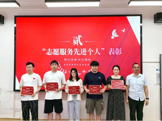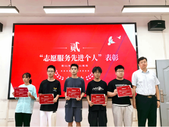 陆新与刘继琮分别为学院学生志愿者颁发“志愿服务先进个人”荣誉证书。
