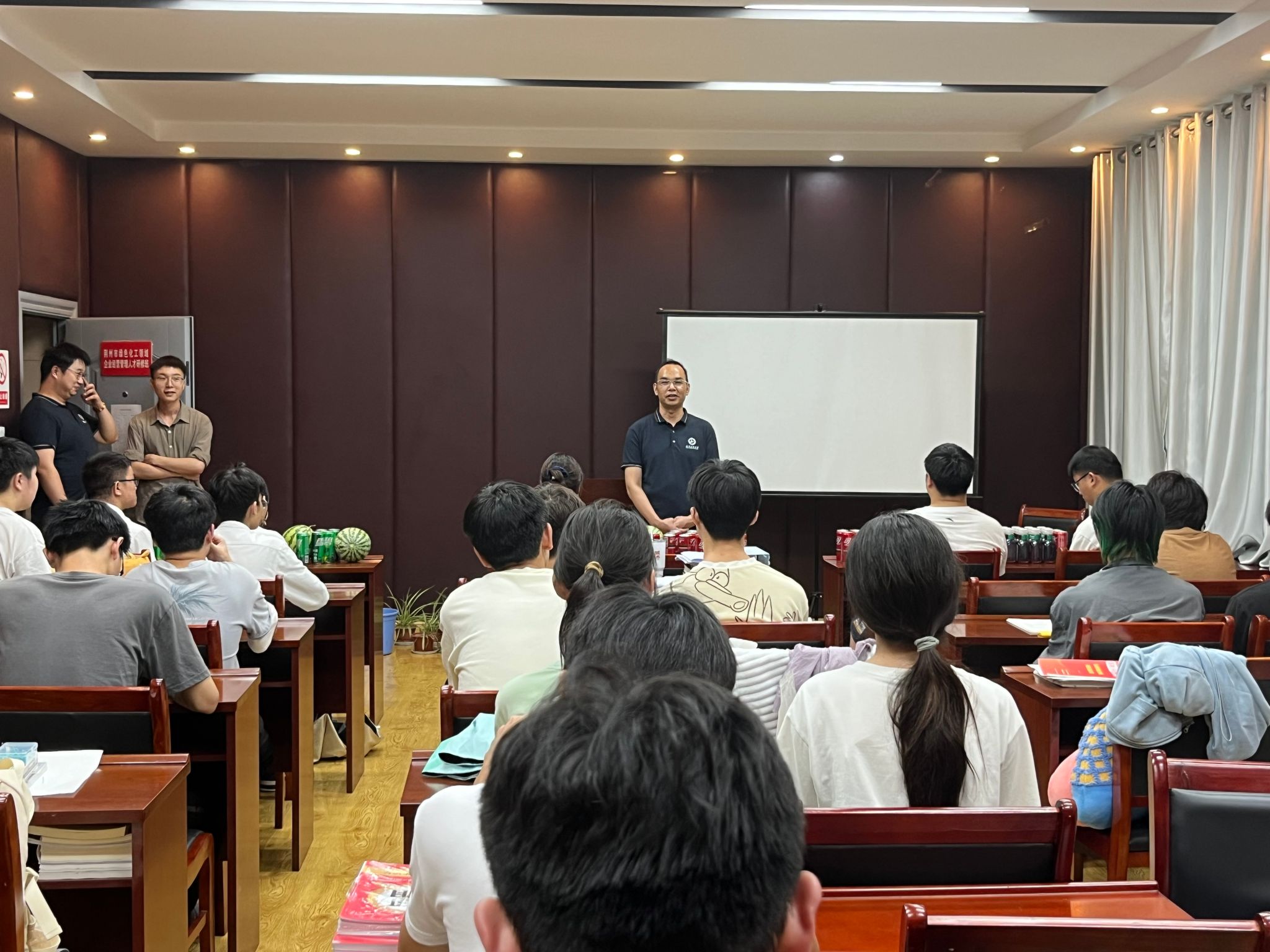 学院党委书记陆新代表学院对暑期留校考研、实习的同学们表示高度赞扬,同时对同学们提出几点鼓励和要求:一是希望大家珍惜时间、坚持不懈。充分利用好暑假时间进行考研复习、实习活动,争取在明年都能取得理想的成绩。二是希望大家注意安全、劳逸结合。暑期高温酷暑,希望大家在紧张复习的同时关注自己身体健康,合理规划复习时间,做到劳逸结合。三是鼓励大家克服困难,勇攀高峰。希望大家克服酷暑炎热和假期学校宿舍升级改造等不便,坚定信心,勇攀人生高峰。