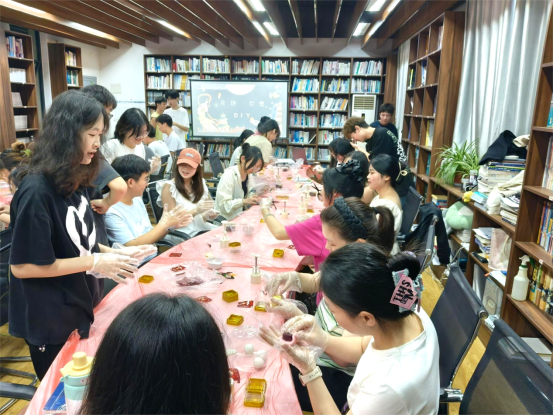 在月饼DIY环节,大家通过工作人员的指导,亲手制作月饼并了解到这一传统习俗的深刻内涵。在揉面团、包馅料过程中,同学们将自己对家人和朋友的美好祝福也包入其中,每位同学都收获了晶莹剔透的冰皮月饼,现场弥漫着独属于中秋佳节的欢乐与温馨气氛。